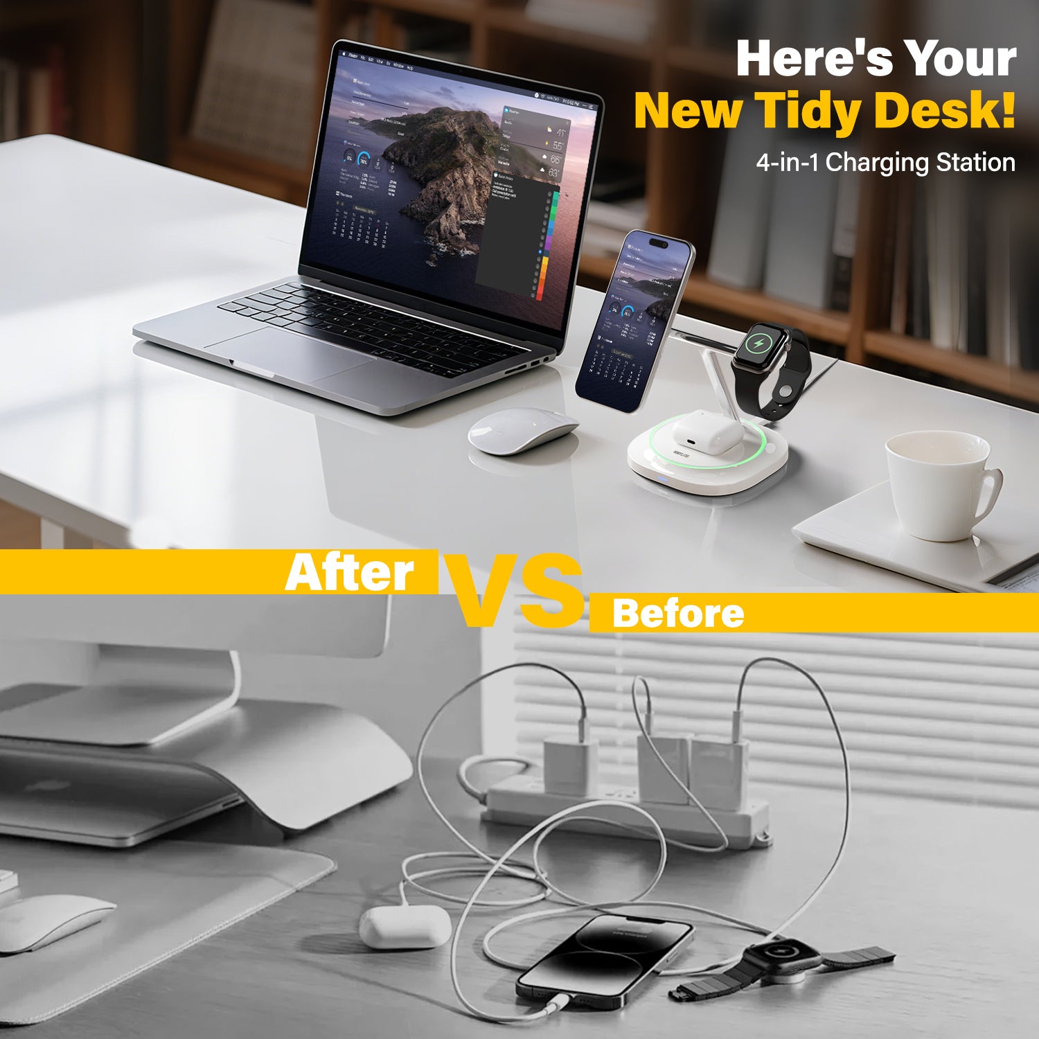 - Non-slip Silicone Base: The stable, non-slip silicone base keeps your devices securely in place for worry-free charging.