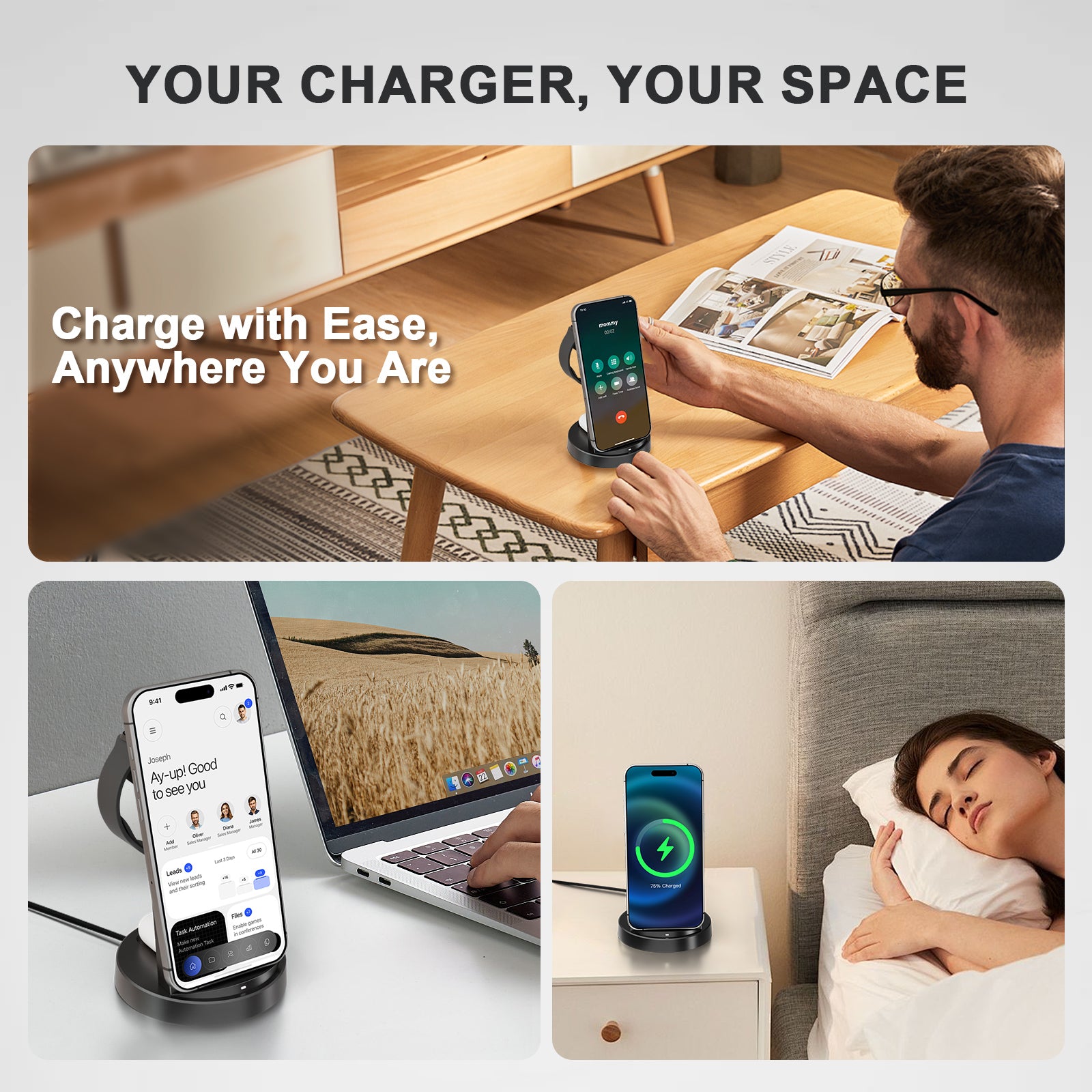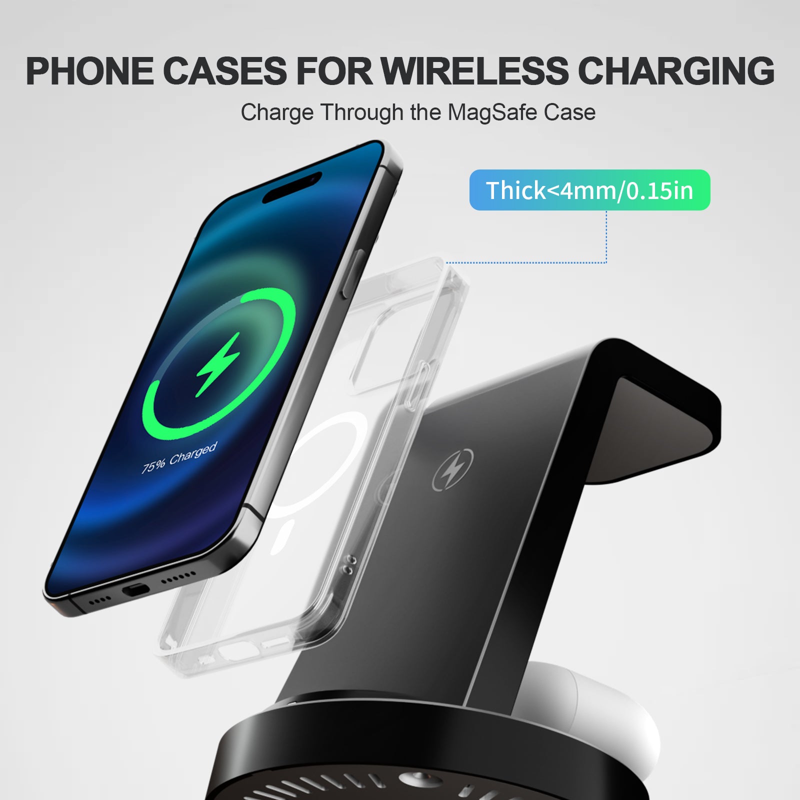 This is a versatile charger that is perfect for home and office use. It has no tangled wires, keeping your desktop tidy. It is suitable for most mobile phone cases with a thickness of no more than 0.2 inches, such as rubber, plastic, TPU, PC cases. It is a great gift for family and friends, allowing them to enjoy a convenient wireless charging experience.